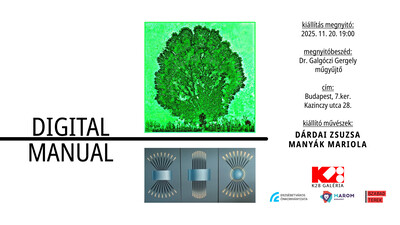 A DIGITÁL–MANUAL kiállítás a digitális és a manuális gondolkodásmód találkozása. Dárdai és Manyák munkái két különböző, mégis egymást kiegészítő alkotói szemléletet képviselnek: a technológia és az anyag, a gép és a kéz, a szerkesztés és a gesztus párbeszédét.