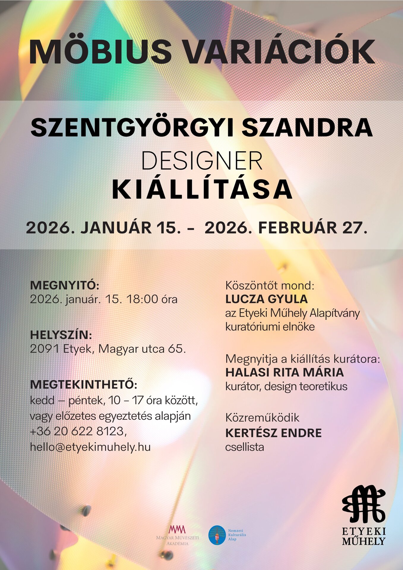 MEGTEKINTHETŐ: 2026. február 27-ig, kedd-péntek 10-17 óra között, vagy előzetes egyeztetés alapján: +36 20 622 8123 / hello@etyekimuhely.hu