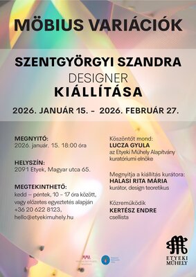 A Möbius variációk című kiállítás anyaga a hároméves MMA Ösztöndíjprogram kutatómunkájának az eredménye. A Möbius-szalag, ez a feszültséggel teli, a végtelent is szimbolizáló alakzat a kiállításon többféle anyagban és számos formai variációban jelenik meg, grafikákon, lámpákon és installációs megoldásokon keresztül mesélve a fény alakváltó és megfoghatatlanul gazdag karakteréről.
